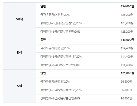 • 장애인 및 국가유공자 할인받은 티켓은 현장수령만 가능하며, 할인 증빙서류(복지카드, 유공자증(유족증 불가) 등) 미지참 시 할인받은 금액 지불 후 티켓 수령 가능합니다.