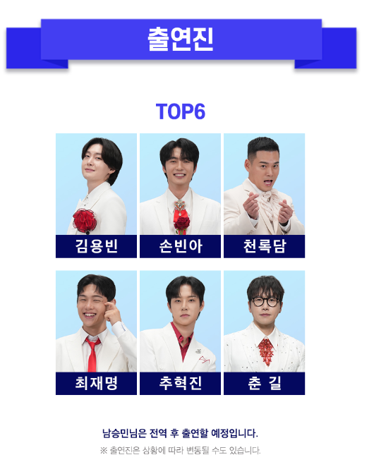 이번 전국투어에는 미스터트롯3에서 활약한 TOP6 멤버들이 출연합니다.