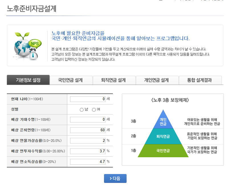 국민연금만으로는 부족할 가능성이 높기 때문에 개인연금, 퇴직연금 등을 적극적으로 활용해야 합니다.