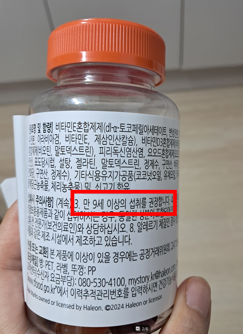 하지만 라벨에 명확하게 표기된 권장 연령은 ‘만 9세 이상’입니다.