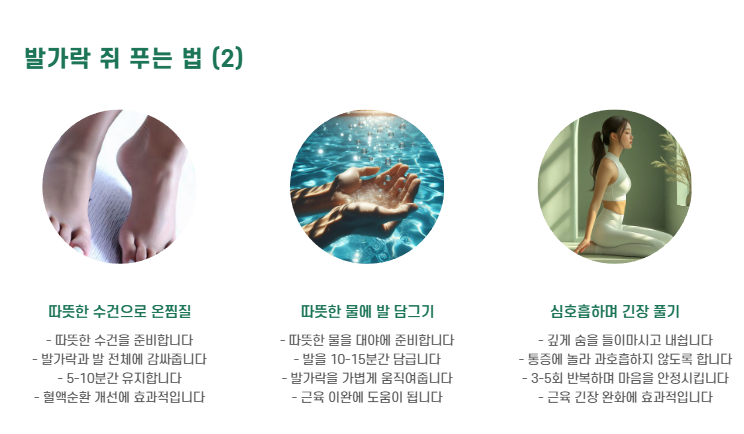 - 혈액이 원활히 순환되지 않으면 발가락 끝 근육이 뭉치면서 통증이 발생할 수 있어요.