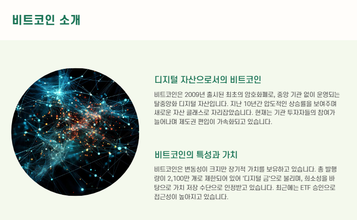 - 비트코인은 변동성이 크지만, 장기적으로는 큰 상승세를 보임