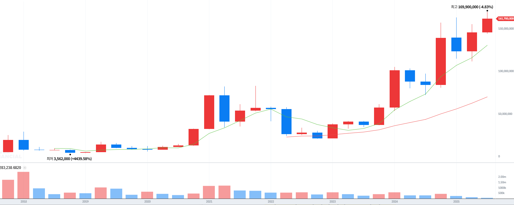- 2021년에는 약 ₩4천만, 2022년 ₩6천만 수준까지 급등했습니다.