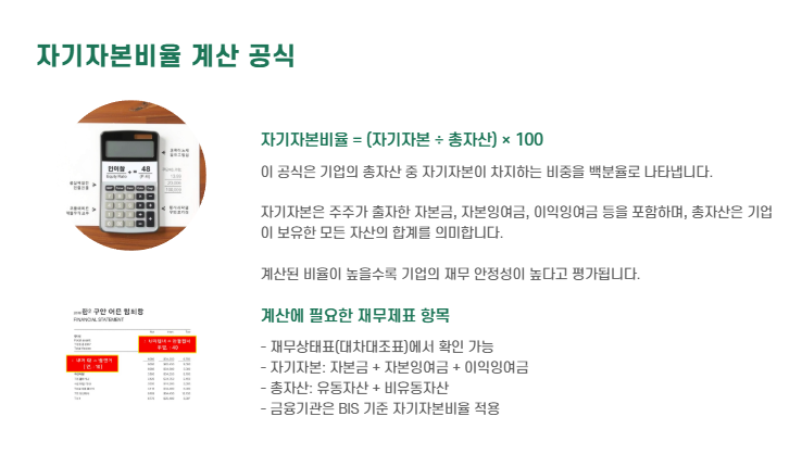 자기자본비율 = (자기자본 ÷ 총자산) × 100