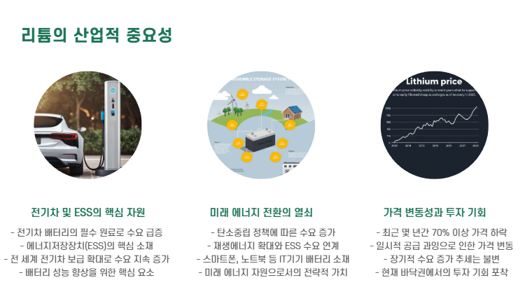 📌 리튬 가격이 하락했다고 해서 수요가 줄어든 건 아닙니다. 실제로 전 세계 전기차 및 ESS 수요는 꾸준히 증가 중입니다.
