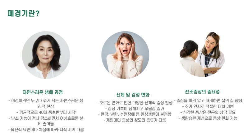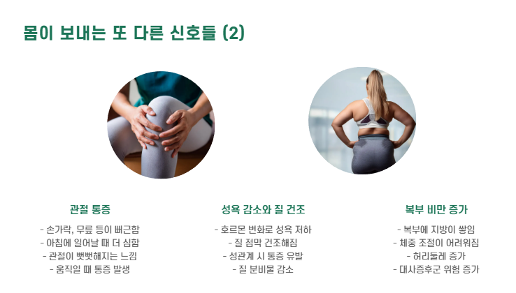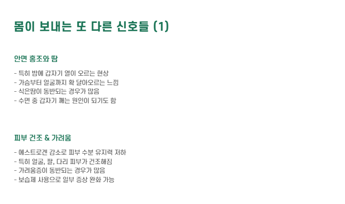 👉 이런 증상들이 한두 달 지속된다면, 폐경기를 의심해보세요.