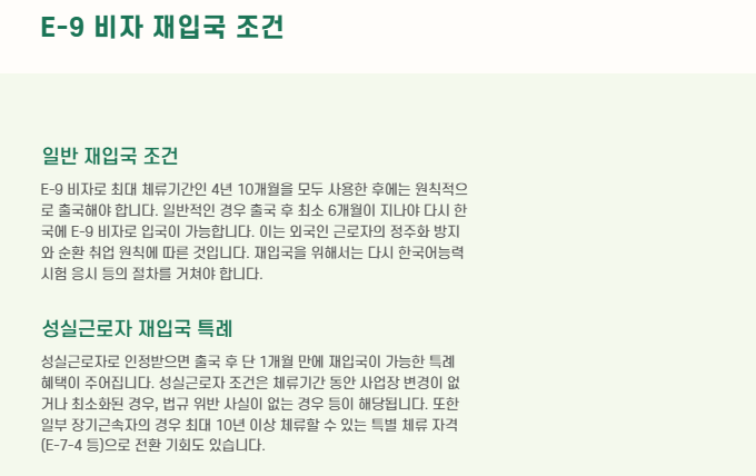 - 성실재입국 특례: 출국 후 1개월 만에 재입국 가능