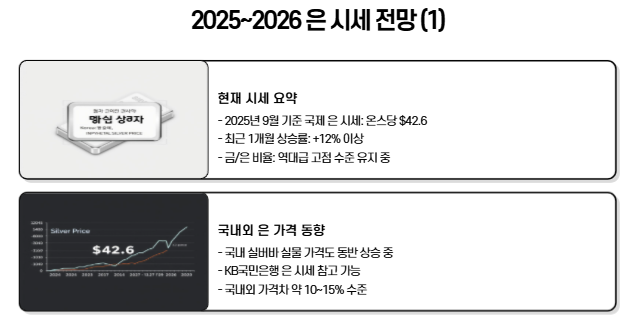 - 2025년 9월 기준 국제 은 시세: 온스당 약 42.6달러