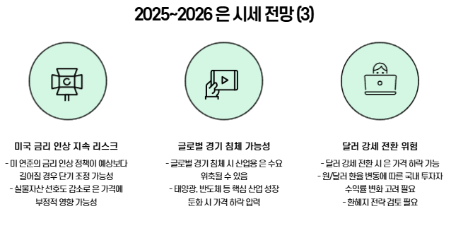 | 금리 인하 가능성 | 실물자산 선호도 증가, 달러 약세 수혜 예상 |
