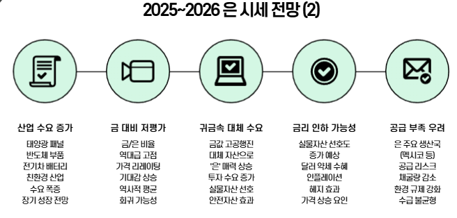 | 귀금속 대체 수요 | 금값 고공행진 → 대체 자산으로 '은' 매력 상승 |